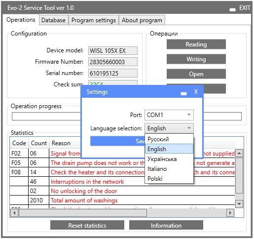 The program "EVO-2 Service Tool"