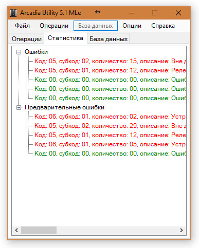 + Статистика сохранённых, в памяти процессора, ошибок ( коды и субкоды с подробным описанием ).